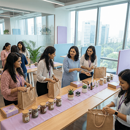 Women employees personalize their wellness hampers based on individual needs. The initiative reinforces that when organizations give choice, care, and autonomy, they gain trust, loyalty, and wellbeing.